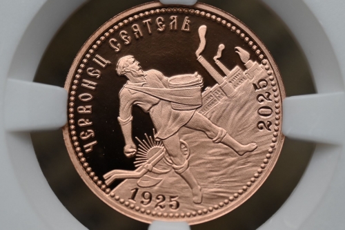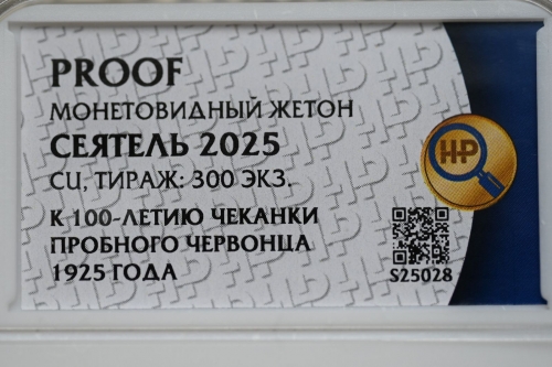 Червонец Сеятель 2025г.,Медь, "К 100-летию чеканки пробного Червонца 1925г." в слабе ННР PROOF