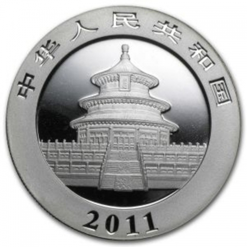 Серебряная монета 10 юаней "Панда" 2011г., 31,1 г.