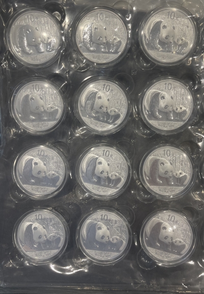• Серебряная Китайская Панда - наиболее популярная инвестиционная монета. Первые монеты Китайская Панда были отчеканены в 1983 году. В период с 1983 года по 1985 год Панда чеканилась в качестве пруф, вес составлял 27 граммов серебра 900 пробы. Тираж в эти годы ограничивался 10000 штук. С 1986 года по 2015 год серебряная монета Панда содержит в себе одну тройскую унцию чистого (999 проба) серебра. В 2016 году производитель отказался от тройского стандарта и начал выпускать панды весом 30 граммов.