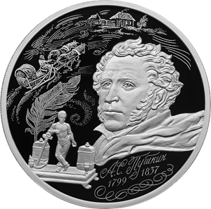 Серебряная монета 3 рубля "225-летие со дня рождения Пушкина А.С." PROOF, Ag 925, 31,1г, 2024г.