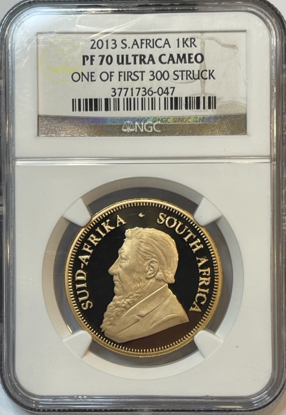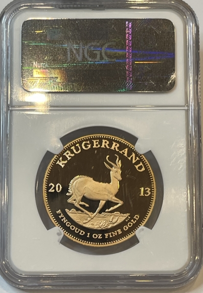 Золотая инвестиционная монета ЮАР "Крюгерранд" Krugerrand gold 31,1 грамм 1oz, в слабе NGC PROOF 70 ULTRA CAMEO
