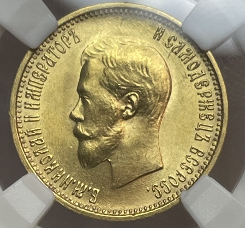 Золотая монета 10 рублей Николай II 1899г.,АГ БЕЗ ТОЧКИ, в слабе ННР MS 65