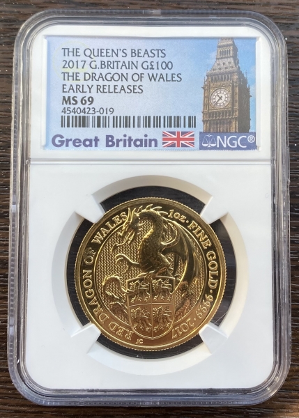 • Еще один вариант дизайна из знаменитой нумизматической инвестиционной коллекции британской правящей фамилии «Звери королевы». Объект инвестиций и охоты ценителей эксклюзивной нумизматики, монеты Красный дракон Уэльса выполнены из золота 9999 пробы и имеет номинал 100 фунтов.