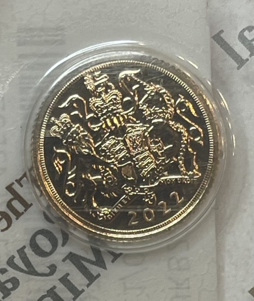Золотая монета 1/2 соверена 2022г., Au 917, 3,99г.