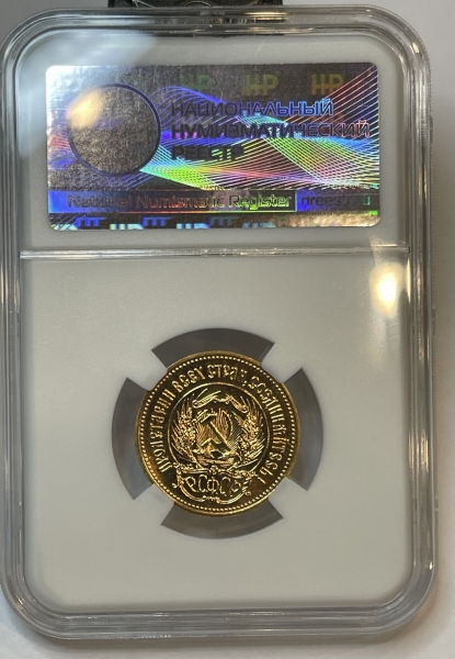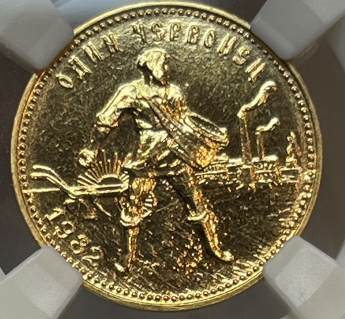 Золотая монета Червонец Сеятель 1982г. ЛМД в слабе ННР MS 65