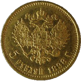 Золотая монета "Николаевские 5 рублей 1898 года"