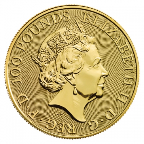 Золотая монета Великобритании 100 фунтов "Единорог" 2018 год 1 OZ
