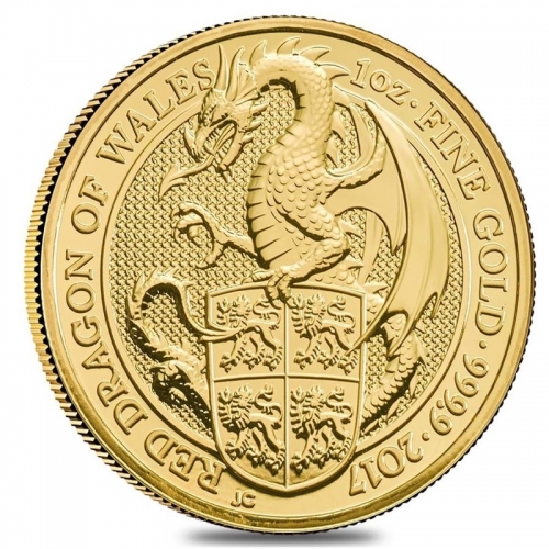 Золотая монета Великобритании 100 фунтов "Красный Дракон" 31,1г., 2017г., 1 OZ