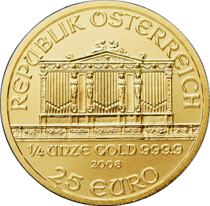 Золотая монета Венская Филармония (Филармоникер) Austrian Gold Philharmonic 1/4 унции 25 евро